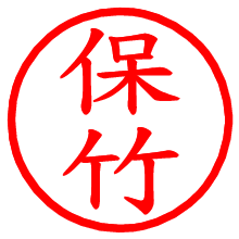 [朱肉の色]を選び、入力窓に“保竹”と入力して[生成]ボタンを押すと、印影が更新され、リンクから電子印鑑(デジタル印影)がダウンロードできます。 電子印鑑「保竹」の作り方文字表示が変なときや、文字バランスが悪いときは[字形切替]のチェックボックスでON/OFFを切り替え[生成]しなおしてください。 生成される画像は通常の印影「保竹.png」と、にじみを表現した少し太めの印影「保竹B.png」の背面透過PNG形式2種と、鮮明なPDF形式の印影「保竹.pdf」の計3種類です。 朱肉の微妙な色の違いを7色で表現しました。デフォルト(左端)は、JISが定めた朱肉の色のマンセル値(7.5R 5/14)をRGB値(217,66,54)に変換したものになっています。 「電子透かし」にチェックを入れて[生成]ボタンを押すと、タイムスタンプを透かしとして埋め込んだセキュアな電子印鑑が作れます。詳細は別ページの「電子透かしとタイムスタンプ」でご覧ください。  保竹さんの日付印が作れます。「日付スタンプメーカー」は、社内向けの書類に利用されることの多い日付印(データ印)が無料で作れるWebアプリケーションです。 中段に日付が入り、上段と下段は、ともに8文字まで文字が入ります。   古代文字で落款印が作れます。「落款スタンプメーカー」で作品を引き立たせる落款印が作れます。  なりきり書道 「落款スタンプメーカー」で作成した落款印の全体的な配置バランスの確認にご利用いただけます。デザインのワンポイントやラインスタンプ等にもお使いください。  遊び心ある保竹さんの角印はいかが? 絵文字が使えてLINEスタンプや年賀状にも使える消しゴムはんこ風の電子印鑑が作れます。  画像スタンプメーカーは、猫派の方はもちろん。犬派の方にもおすすめしたいペットなどのお気に入りの画像とかわいいタッチの文字が入るほっこりしたスタンプです。 マイスタンプメーカーとは法的な電子印鑑にはあたりませんので三文判的な位置付けでご利用ください。 | ||
