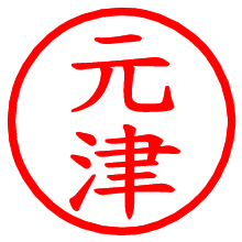 [朱肉の色]を選び、入力窓に“元津”と入力して[生成]ボタンを押すと、印影が更新され、リンクから電子印鑑(デジタル印影)がダウンロードできます。 電子印鑑「元津」の作り方文字表示が変なときや、文字バランスが悪いときは[字形切替]のチェックボックスでON/OFFを切り替え[生成]しなおしてください。 生成される画像は通常の印影「元津.png」と、にじみを表現した少し太めの印影「元津B.png」の背面透過PNG形式2種と、鮮明なPDF形式の印影「元津.pdf」の計3種類です。 朱肉の微妙な色の違いを7色で表現しました。デフォルト(左端)は、JISが定めた朱肉の色のマンセル値(7.5R 5/14)をRGB値(217,66,54)に変換したものになっています。 「電子透かし」にチェックを入れて[生成]ボタンを押すと、タイムスタンプを電子透かしとして埋め込んだセキュアな電子印鑑が作れます。詳細は別ページの「タイムスタンプと電子透かし」でご覧ください。 元津さんの日付印が作れます。「日付スタンプメーカー」は、社内向けの書類に利用されることの多い日付印(データ印)が無料で作れるWebアプリケーションです。中段に日付が入り、上段と下段は、ともに8文字まで文字が入ります。 ![]() 古代文字で落款印が作れます。「落款スタンプメーカー」で作品を引き立たせる落款印が作れます。