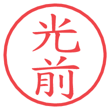 [朱肉の色]を選び、入力窓に“光前”と入力して[生成]ボタンを押すと、印影が更新され、リンクから電子印鑑(デジタル印影)がダウンロードできます。 電子印鑑「光前」の作り方文字表示が変なときや、文字バランスが悪いときは[字形切替]のチェックボックスでON/OFFを切り替え[生成]しなおしてください。 生成される画像は通常の印影「光前.png」と、にじみを表現した少し太めの印影「光前B.png」の背面透過PNG形式2種と、鮮明なPDF形式の印影「光前.pdf」の計3種類です。 朱肉の微妙な色の違いを7色で表現しました。デフォルト(左端)は、JISが定めた朱肉の色のマンセル値(7.5R 5/14)をRGB値(217,66,54)に変換したものになっています。 「電子透かし」にチェックを入れて[生成]ボタンを押すと、タイムスタンプを電子透かしとして埋め込んだセキュアな電子印鑑が作れます。詳細は別ページの「タイムスタンプと電子透かし」でご覧ください。 光前さんの日付印が作れます。「日付スタンプメーカー」は、社内向けの書類に利用されることの多い日付印(データ印)が無料で作れるWebアプリケーションです。中段に日付が入り、上段と下段は、ともに8文字まで文字が入ります。 ![]() 古代文字で落款印が作れます。「落款スタンプメーカー」で作品を引き立たせる落款印が作れます。