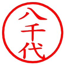[朱肉の色]を選び、入力窓に“八千代”と入力して[生成]ボタンを押すと、印影が更新され、リンクから電子印鑑(デジタル印影)がダウンロードできます。 電子印鑑「八千代」の作り方文字表示が変なときや、文字バランスが悪いときは[字形切替]のチェックボックスでON/OFFを切り替え[生成]しなおしてください。 生成される画像は通常の印影「八千代.png」と、にじみを表現した少し太めの印影「八千代B.png」の背面透過PNG形式2種と、鮮明なPDF形式の印影「八千代.pdf」の計3種類です。 朱肉の微妙な色の違いを7色で表現しました。デフォルト(左端)は、JISが定めた朱肉の色のマンセル値(7.5R 5/14)をRGB値(217,66,54)に変換したものになっています。 「電子透かし」にチェックを入れて[生成]ボタンを押すと、タイムスタンプを電子透かしとして埋め込んだセキュアな電子印鑑が作れます。詳細は別ページの「タイムスタンプと電子透かし」でご覧ください。 八千代さんの日付印が作れます。「日付スタンプメーカー」は、社内向けの書類に利用されることの多い日付印(データ印)が無料で作れるWebアプリケーションです。中段に日付が入り、上段と下段は、ともに8文字まで文字が入ります。 ![]() 古代文字で落款印が作れます。「落款スタンプメーカー」で作品を引き立たせる落款印が作れます。