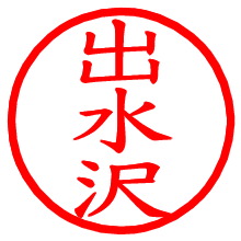 [朱肉の色]を選び、入力窓に“出水沢”と入力して[生成]ボタンを押すと、印影が更新され、リンクから電子印鑑(デジタル印影)がダウンロードできます。 電子印鑑「出水沢」の作り方文字表示が変なときや、文字バランスが悪いときは[字形切替]のチェックボックスでON/OFFを切り替え[生成]しなおしてください。 生成される画像は通常の印影「出水沢.png」と、にじみを表現した少し太めの印影「出水沢B.png」の背面透過PNG形式2種と、鮮明なPDF形式の印影「出水沢.pdf」の計3種類です。 朱肉の微妙な色の違いを7色で表現しました。デフォルト(左端)は、JISが定めた朱肉の色のマンセル値(7.5R 5/14)をRGB値(217,66,54)に変換したものになっています。 「電子透かし」にチェックを入れて[生成]ボタンを押すと、タイムスタンプを電子透かしとして埋め込んだセキュアな電子印鑑が作れます。詳細は別ページの「タイムスタンプと電子透かし」でご覧ください。 出水沢さんの日付印が作れます。「日付スタンプメーカー」は、社内向けの書類に利用されることの多い日付印(データ印)が無料で作れるWebアプリケーションです。中段に日付が入り、上段と下段は、ともに8文字まで文字が入ります。 ![]() 古代文字で落款印が作れます。「落款スタンプメーカー」で作品を引き立たせる落款印が作れます。