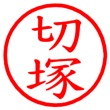 [朱肉の色]を選び、入力窓に“切塚”と入力して[生成]ボタンを押すと、印影が更新され、リンクから電子印鑑(デジタル印影)がダウンロードできます。 電子印鑑「切塚」の作り方文字表示が変なときや、文字バランスが悪いときは[字形切替]のチェックボックスでON/OFFを切り替え[生成]しなおしてください。 生成される画像は通常の印影「切塚.png」と、にじみを表現した少し太めの印影「切塚B.png」の背面透過PNG形式2種と、鮮明なPDF形式の印影「切塚.pdf」の計3種類です。 朱肉の微妙な色の違いを7色で表現しました。デフォルト(左端)は、JISが定めた朱肉の色のマンセル値(7.5R 5/14)をRGB値(217,66,54)に変換したものになっています。 「電子透かし」にチェックを入れて[生成]ボタンを押すと、タイムスタンプを電子透かしとして埋め込んだセキュアな電子印鑑が作れます。詳細は別ページの「タイムスタンプと電子透かし」でご覧ください。 切塚さんの日付印が作れます。「日付スタンプメーカー」は、社内向けの書類に利用されることの多い日付印(データ印)が無料で作れるWebアプリケーションです。中段に日付が入り、上段と下段は、ともに8文字まで文字が入ります。 ![]() 古代文字で落款印が作れます。「落款スタンプメーカー」で作品を引き立たせる落款印が作れます。