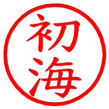 [朱肉の色]を選び、入力窓に“初海”と入力して[生成]ボタンを押すと、印影が更新され、リンクから電子印鑑(デジタル印影)がダウンロードできます。 電子印鑑「初海」の作り方文字表示が変なときや、文字バランスが悪いときは[字形切替]のチェックボックスでON/OFFを切り替え[生成]しなおしてください。 生成される画像は通常の印影「初海.png」と、にじみを表現した少し太めの印影「初海B.png」の背面透過PNG形式2種と、鮮明なPDF形式の印影「初海.pdf」の計3種類です。 朱肉の微妙な色の違いを7色で表現しました。デフォルト(左端)は、JISが定めた朱肉の色のマンセル値(7.5R 5/14)をRGB値(217,66,54)に変換したものになっています。 「電子透かし」にチェックを入れて[生成]ボタンを押すと、タイムスタンプを透かしとして埋め込んだセキュアな電子印鑑が作れます。詳細は別ページの「電子透かしとタイムスタンプ」でご覧ください。  初海さんの日付印が作れます。「日付スタンプメーカー」は、社内向けの書類に利用されることの多い日付印(データ印)が無料で作れるWebアプリケーションです。中段に日付が入り、上段と下段は、ともに8文字まで文字が入ります。 ![]()  古代文字で落款印が作れます。「落款スタンプメーカー」で作品を引き立たせる落款印が作れます。