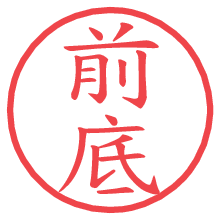 [朱肉の色]を選び、入力窓に“前底”と入力して[生成]ボタンを押すと、印影が更新され、リンクから電子印鑑(デジタル印影)がダウンロードできます。 電子印鑑「前底」の作り方文字表示が変なときや、文字バランスが悪いときは[字形切替]のチェックボックスでON/OFFを切り替え[生成]しなおしてください。 生成される画像は通常の印影「前底.png」と、にじみを表現した少し太めの印影「前底B.png」の背面透過PNG形式2種と、鮮明なPDF形式の印影「前底.pdf」の計3種類です。 朱肉の微妙な色の違いを7色で表現しました。デフォルト(左端)は、JISが定めた朱肉の色のマンセル値(7.5R 5/14)をRGB値(217,66,54)に変換したものになっています。 「電子透かし」にチェックを入れて[生成]ボタンを押すと、タイムスタンプを電子透かしとして埋め込んだセキュアな電子印鑑が作れます。詳細は別ページの「タイムスタンプと電子透かし」でご覧ください。 前底さんの日付印が作れます。「日付スタンプメーカー」は、社内向けの書類に利用されることの多い日付印(データ印)が無料で作れるWebアプリケーションです。中段に日付が入り、上段と下段は、ともに8文字まで文字が入ります。 ![]() 古代文字で落款印が作れます。「落款スタンプメーカー」で作品を引き立たせる落款印が作れます。