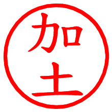 [朱肉の色]を選び、入力窓に“加土”と入力して[生成]ボタンを押すと、印影が更新され、リンクから電子印鑑(デジタル印影)がダウンロードできます。 電子印鑑「加土」の作り方文字表示が変なときや、文字バランスが悪いときは[字形切替]のチェックボックスでON/OFFを切り替え[生成]しなおしてください。 生成される画像は通常の印影「加土.png」と、にじみを表現した少し太めの印影「加土B.png」の背面透過PNG形式2種と、鮮明なPDF形式の印影「加土.pdf」の計3種類です。 朱肉の微妙な色の違いを7色で表現しました。デフォルト(左端)は、JISが定めた朱肉の色のマンセル値(7.5R 5/14)をRGB値(217,66,54)に変換したものになっています。 「電子透かし」にチェックを入れて[生成]ボタンを押すと、タイムスタンプを電子透かしとして埋め込んだセキュアな電子印鑑が作れます。詳細は別ページの「タイムスタンプと電子透かし」でご覧ください。 加土さんの日付印が作れます。「日付スタンプメーカー」は、社内向けの書類に利用されることの多い日付印(データ印)が無料で作れるWebアプリケーションです。中段に日付が入り、上段と下段は、ともに8文字まで文字が入ります。 ![]() 古代文字で落款印が作れます。「落款スタンプメーカー」で作品を引き立たせる落款印が作れます。