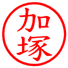[朱肉の色]を選び、入力窓に“加塚”と入力して[生成]ボタンを押すと、印影が更新され、リンクから電子印鑑(デジタル印影)がダウンロードできます。 電子印鑑「加塚」の作り方文字表示が変なときや、文字バランスが悪いときは[字形切替]のチェックボックスでON/OFFを切り替え[生成]しなおしてください。 生成される画像は通常の印影「加塚.png」と、にじみを表現した少し太めの印影「加塚B.png」の背面透過PNG形式2種と、鮮明なPDF形式の印影「加塚.pdf」の計3種類です。 朱肉の微妙な色の違いを7色で表現しました。デフォルト(左端)は、JISが定めた朱肉の色のマンセル値(7.5R 5/14)をRGB値(217,66,54)に変換したものになっています。 「電子透かし」にチェックを入れて[生成]ボタンを押すと、タイムスタンプを電子透かしとして埋め込んだセキュアな電子印鑑が作れます。詳細は別ページの「タイムスタンプと電子透かし」でご覧ください。 加塚さんの日付印が作れます。「日付スタンプメーカー」は、社内向けの書類に利用されることの多い日付印(データ印)が無料で作れるWebアプリケーションです。中段に日付が入り、上段と下段は、ともに8文字まで文字が入ります。 ![]() 古代文字で落款印が作れます。「落款スタンプメーカー」で作品を引き立たせる落款印が作れます。