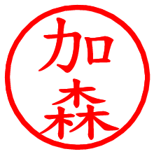 [朱肉の色]を選び、入力窓に“加森”と入力して[生成]ボタンを押すと、印影が更新され、リンクから電子印鑑(デジタル印影)がダウンロードできます。 電子印鑑「加森」の作り方文字表示が変なときや、文字バランスが悪いときは[字形切替]のチェックボックスでON/OFFを切り替え[生成]しなおしてください。 生成される画像は通常の印影「加森.png」と、にじみを表現した少し太めの印影「加森B.png」の背面透過PNG形式2種と、鮮明なPDF形式の印影「加森.pdf」の計3種類です。 朱肉の微妙な色の違いを7色で表現しました。デフォルト(左端)は、JISが定めた朱肉の色のマンセル値(7.5R 5/14)をRGB値(217,66,54)に変換したものになっています。 「電子透かし」にチェックを入れて[生成]ボタンを押すと、タイムスタンプを透かしとして埋め込んだセキュアな電子印鑑が作れます。詳細は別ページの「電子透かしとタイムスタンプ」でご覧ください。  加森さんの日付印が作れます。「日付スタンプメーカー」は、社内向けの書類に利用されることの多い日付印(データ印)が無料で作れるWebアプリケーションです。 中段に日付が入り、上段と下段は、ともに8文字まで文字が入ります。   古代文字で落款印が作れます。「落款スタンプメーカー」で作品を引き立たせる落款印が作れます。  なりきり書道 「落款スタンプメーカー」で作成した落款印の全体的な配置バランスの確認にご利用いただけます。デザインのワンポイントやラインスタンプ等にもお使いください。  遊び心ある加森さんの角印はいかが? 絵文字が使えてLINEスタンプや年賀状にも使える消しゴムはんこ風の電子印鑑が作れます。  画像スタンプメーカーは、猫派の方はもちろん。犬派の方にもおすすめしたいペットなどのお気に入りの画像とかわいいタッチの文字が入るほっこりしたスタンプです。 マイスタンプメーカーとは法的な電子印鑑にはあたりませんので三文判的な位置付けでご利用ください。 | ||