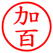 [朱肉の色]を選び、入力窓に“加百”と入力して[生成]ボタンを押すと、印影が更新され、リンクから電子印鑑(デジタル印影)がダウンロードできます。 電子印鑑「加百」の作り方文字表示が変なときや、文字バランスが悪いときは[字形切替]のチェックボックスでON/OFFを切り替え[生成]しなおしてください。 生成される画像は通常の印影「加百.png」と、にじみを表現した少し太めの印影「加百B.png」の背面透過PNG形式2種と、鮮明なPDF形式の印影「加百.pdf」の計3種類です。 朱肉の微妙な色の違いを7色で表現しました。デフォルト(左端)は、JISが定めた朱肉の色のマンセル値(7.5R 5/14)をRGB値(217,66,54)に変換したものになっています。 「電子透かし」にチェックを入れて[生成]ボタンを押すと、タイムスタンプを電子透かしとして埋め込んだセキュアな電子印鑑が作れます。詳細は別ページの「タイムスタンプと電子透かし」でご覧ください。 加百さんの日付印が作れます。「日付スタンプメーカー」は、社内向けの書類に利用されることの多い日付印(データ印)が無料で作れるWebアプリケーションです。中段に日付が入り、上段と下段は、ともに8文字まで文字が入ります。 ![]() 古代文字で落款印が作れます。「落款スタンプメーカー」で作品を引き立たせる落款印が作れます。