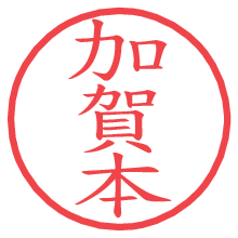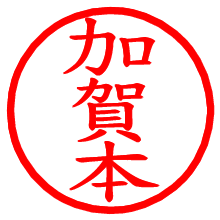 [朱肉の色]を選び、入力窓に“加賀本”と入力して[生成]ボタンを押すと、印影が更新され、リンクから電子印鑑(デジタル印影)がダウンロードできます。 電子印鑑「加賀本」の作り方文字表示が変なときや、文字バランスが悪いときは[字形切替]のチェックボックスでON/OFFを切り替え[生成]しなおしてください。 生成される画像は通常の印影「加賀本.png」と、にじみを表現した少し太めの印影「加賀本B.png」の背面透過PNG形式2種と、鮮明なPDF形式の印影「加賀本.pdf」の計3種類です。 朱肉の微妙な色の違いを7色で表現しました。デフォルト(左端)は、JISが定めた朱肉の色のマンセル値(7.5R 5/14)をRGB値(217,66,54)に変換したものになっています。 「電子透かし」にチェックを入れて[生成]ボタンを押すと、タイムスタンプを電子透かしとして埋め込んだセキュアな電子印鑑が作れます。詳細は別ページの「タイムスタンプと電子透かし」でご覧ください。 加賀本さんの日付印が作れます。「日付スタンプメーカー」は、社内向けの書類に利用されることの多い日付印(データ印)が無料で作れるWebアプリケーションです。中段に日付が入り、上段と下段は、ともに8文字まで文字が入ります。 ![]() 古代文字で落款印が作れます。「落款スタンプメーカー」で作品を引き立たせる落款印が作れます。