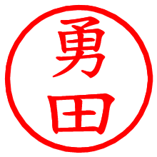 [朱肉の色]を選び、入力窓に“勇田”と入力して[生成]ボタンを押すと、印影が更新され、リンクから電子印鑑(デジタル印影)がダウンロードできます。 電子印鑑「勇田」の作り方文字表示が変なときや、文字バランスが悪いときは[字形切替]のチェックボックスでON/OFFを切り替え[生成]しなおしてください。 生成される画像は通常の印影「勇田.png」と、にじみを表現した少し太めの印影「勇田B.png」の背面透過PNG形式2種と、鮮明なPDF形式の印影「勇田.pdf」の計3種類です。 朱肉の微妙な色の違いを7色で表現しました。デフォルト(左端)は、JISが定めた朱肉の色のマンセル値(7.5R 5/14)をRGB値(217,66,54)に変換したものになっています。 「電子透かし」にチェックを入れて[生成]ボタンを押すと、タイムスタンプを透かしとして埋め込んだセキュアな電子印鑑が作れます。詳細は別ページの「電子透かしとタイムスタンプ」でご覧ください。 勇田さんの日付印が作れます。「日付スタンプメーカー」は、社内向けの書類に利用されることの多い日付印(データ印)が無料で作れるWebアプリケーションです。中段に日付が入り、上段と下段は、ともに8文字まで文字が入ります。 ![]() 古代文字で落款印が作れます。「落款スタンプメーカー」で作品を引き立たせる落款印が作れます。