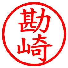 [朱肉の色]を選び、入力窓に“勘崎”と入力して[生成]ボタンを押すと、印影が更新され、リンクから電子印鑑(デジタル印影)がダウンロードできます。 電子印鑑「勘崎」の作り方文字表示が変なときや、文字バランスが悪いときは[字形切替]のチェックボックスでON/OFFを切り替え[生成]しなおしてください。 生成される画像は通常の印影「勘崎.png」と、にじみを表現した少し太めの印影「勘崎B.png」の背面透過PNG形式2種と、鮮明なPDF形式の印影「勘崎.pdf」の計3種類です。 朱肉の微妙な色の違いを7色で表現しました。デフォルト(左端)は、JISが定めた朱肉の色のマンセル値(7.5R 5/14)をRGB値(217,66,54)に変換したものになっています。 「電子透かし」にチェックを入れて[生成]ボタンを押すと、タイムスタンプを電子透かしとして埋め込んだセキュアな電子印鑑が作れます。詳細は別ページの「タイムスタンプと電子透かし」でご覧ください。 勘崎さんの日付印が作れます。「日付スタンプメーカー」は、社内向けの書類に利用されることの多い日付印(データ印)が無料で作れるWebアプリケーションです。中段に日付が入り、上段と下段は、ともに8文字まで文字が入ります。 ![]() 古代文字で落款印が作れます。「落款スタンプメーカー」で作品を引き立たせる落款印が作れます。