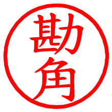 [朱肉の色]を選び、入力窓に“勘角”と入力して[生成]ボタンを押すと、印影が更新され、リンクから電子印鑑(デジタル印影)がダウンロードできます。 電子印鑑「勘角」の作り方文字表示が変なときや、文字バランスが悪いときは[字形切替]のチェックボックスでON/OFFを切り替え[生成]しなおしてください。 生成される画像は通常の印影「勘角.png」と、にじみを表現した少し太めの印影「勘角B.png」の背面透過PNG形式2種と、鮮明なPDF形式の印影「勘角.pdf」の計3種類です。 朱肉の微妙な色の違いを7色で表現しました。デフォルト(左端)は、JISが定めた朱肉の色のマンセル値(7.5R 5/14)をRGB値(217,66,54)に変換したものになっています。 「電子透かし」にチェックを入れて[生成]ボタンを押すと、タイムスタンプを電子透かしとして埋め込んだセキュアな電子印鑑が作れます。詳細は別ページの「タイムスタンプと電子透かし」でご覧ください。 勘角さんの日付印が作れます。「日付スタンプメーカー」は、社内向けの書類に利用されることの多い日付印(データ印)が無料で作れるWebアプリケーションです。中段に日付が入り、上段と下段は、ともに8文字まで文字が入ります。 ![]() 古代文字で落款印が作れます。「落款スタンプメーカー」で作品を引き立たせる落款印が作れます。