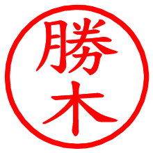 [朱肉の色]を選び、入力窓に“勝木”と入力して[生成]ボタンを押すと、印影が更新され、リンクから電子印鑑(デジタル印影)がダウンロードできます。 電子印鑑「勝木」の作り方文字表示が変なときや、文字バランスが悪いときは[字形切替]のチェックボックスでON/OFFを切り替え[生成]しなおしてください。 生成される画像は通常の印影「勝木.png」と、にじみを表現した少し太めの印影「勝木B.png」の背面透過PNG形式2種と、鮮明なPDF形式の印影「勝木.pdf」の計3種類です。 朱肉の微妙な色の違いを7色で表現しました。デフォルト(左端)は、JISが定めた朱肉の色のマンセル値(7.5R 5/14)をRGB値(217,66,54)に変換したものになっています。 「電子透かし」にチェックを入れて[生成]ボタンを押すと、タイムスタンプを透かしとして埋め込んだセキュアな電子印鑑が作れます。詳細は別ページの「電子透かしとタイムスタンプ」でご覧ください。 勝木さんの日付印が作れます。「日付スタンプメーカー」は、社内向けの書類に利用されることの多い日付印(データ印)が無料で作れるWebアプリケーションです。中段に日付が入り、上段と下段は、ともに8文字まで文字が入ります。 ![]() 古代文字で落款印が作れます。「落款スタンプメーカー」で作品を引き立たせる落款印が作れます。