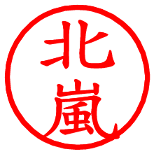 [朱肉の色]を選び、入力窓に“北嵐”と入力して[生成]ボタンを押すと、印影が更新され、リンクから電子印鑑(デジタル印影)がダウンロードできます。 電子印鑑「北嵐」の作り方文字表示が変なときや、文字バランスが悪いときは[字形切替]のチェックボックスでON/OFFを切り替え[生成]しなおしてください。 生成される画像は通常の印影「北嵐.png」と、にじみを表現した少し太めの印影「北嵐B.png」の背面透過PNG形式2種と、鮮明なPDF形式の印影「北嵐.pdf」の計3種類です。 朱肉の微妙な色の違いを7色で表現しました。デフォルト(左端)は、JISが定めた朱肉の色のマンセル値(7.5R 5/14)をRGB値(217,66,54)に変換したものになっています。 「電子透かし」にチェックを入れて[生成]ボタンを押すと、タイムスタンプを電子透かしとして埋め込んだセキュアな電子印鑑が作れます。詳細は別ページの「タイムスタンプと電子透かし」でご覧ください。 北嵐さんの日付印が作れます。「日付スタンプメーカー」は、社内向けの書類に利用されることの多い日付印(データ印)が無料で作れるWebアプリケーションです。中段に日付が入り、上段と下段は、ともに8文字まで文字が入ります。 ![]() 古代文字で落款印が作れます。「落款スタンプメーカー」で作品を引き立たせる落款印が作れます。