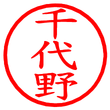 [朱肉の色]を選び、入力窓に“千代野”と入力して[生成]ボタンを押すと、印影が更新され、リンクから電子印鑑(デジタル印影)がダウンロードできます。 電子印鑑「千代野」の作り方文字表示が変なときや、文字バランスが悪いときは[字形切替]のチェックボックスでON/OFFを切り替え[生成]しなおしてください。 生成される画像は通常の印影「千代野.png」と、にじみを表現した少し太めの印影「千代野B.png」の背面透過PNG形式2種と、鮮明なPDF形式の印影「千代野.pdf」の計3種類です。 朱肉の微妙な色の違いを7色で表現しました。デフォルト(左端)は、JISが定めた朱肉の色のマンセル値(7.5R 5/14)をRGB値(217,66,54)に変換したものになっています。 「電子透かし」にチェックを入れて[生成]ボタンを押すと、タイムスタンプを電子透かしとして埋め込んだセキュアな電子印鑑が作れます。詳細は別ページの「タイムスタンプと電子透かし」でご覧ください。 千代野さんの日付印が作れます。「日付スタンプメーカー」は、社内向けの書類に利用されることの多い日付印(データ印)が無料で作れるWebアプリケーションです。中段に日付が入り、上段と下段は、ともに8文字まで文字が入ります。 ![]() 古代文字で落款印が作れます。「落款スタンプメーカー」で作品を引き立たせる落款印が作れます。
