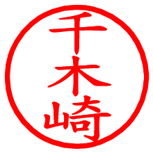 [朱肉の色]を選び、入力窓に“千木崎”と入力して[生成]ボタンを押すと、印影が更新され、リンクから電子印鑑(デジタル印影)がダウンロードできます。 電子印鑑「千木崎」の作り方文字表示が変なときや、文字バランスが悪いときは[字形切替]のチェックボックスでON/OFFを切り替え[生成]しなおしてください。 生成される画像は通常の印影「千木崎.png」と、にじみを表現した少し太めの印影「千木崎B.png」の背面透過PNG形式2種と、鮮明なPDF形式の印影「千木崎.pdf」の計3種類です。 朱肉の微妙な色の違いを7色で表現しました。デフォルト(左端)は、JISが定めた朱肉の色のマンセル値(7.5R 5/14)をRGB値(217,66,54)に変換したものになっています。 「電子透かし」にチェックを入れて[生成]ボタンを押すと、タイムスタンプを電子透かしとして埋め込んだセキュアな電子印鑑が作れます。詳細は別ページの「タイムスタンプと電子透かし」でご覧ください。 千木崎さんの日付印が作れます。「日付スタンプメーカー」は、社内向けの書類に利用されることの多い日付印(データ印)が無料で作れるWebアプリケーションです。中段に日付が入り、上段と下段は、ともに8文字まで文字が入ります。 ![]() 古代文字で落款印が作れます。「落款スタンプメーカー」で作品を引き立たせる落款印が作れます。
