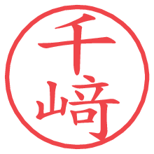 [朱肉の色]を選び、入力窓に“千﨑”と入力して[生成]ボタンを押すと、印影が更新され、リンクから電子印鑑(デジタル印影)がダウンロードできます。 電子印鑑「千﨑」の作り方文字表示が変なときや、文字バランスが悪いときは[字形切替]のチェックボックスでON/OFFを切り替え[生成]しなおしてください。 生成される画像は通常の印影「千﨑.png」と、にじみを表現した少し太めの印影「千﨑B.png」の背面透過PNG形式2種と、鮮明なPDF形式の印影「千﨑.pdf」の計3種類です。 朱肉の微妙な色の違いを7色で表現しました。デフォルト(左端)は、JISが定めた朱肉の色のマンセル値(7.5R 5/14)をRGB値(217,66,54)に変換したものになっています。 「電子透かし」にチェックを入れて[生成]ボタンを押すと、タイムスタンプを電子透かしとして埋め込んだセキュアな電子印鑑が作れます。詳細は別ページの「タイムスタンプと電子透かし」でご覧ください。 千﨑さんの日付印が作れます。「日付スタンプメーカー」は、社内向けの書類に利用されることの多い日付印(データ印)が無料で作れるWebアプリケーションです。中段に日付が入り、上段と下段は、ともに8文字まで文字が入ります。 ![]() 古代文字で落款印が作れます。「落款スタンプメーカー」で作品を引き立たせる落款印が作れます。