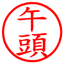 [朱肉の色]を選び、入力窓に“午頭”と入力して[生成]ボタンを押すと、印影が更新され、リンクから電子印鑑(デジタル印影)がダウンロードできます。 電子印鑑「午頭」の作り方文字表示が変なときや、文字バランスが悪いときは[字形切替]のチェックボックスでON/OFFを切り替え[生成]しなおしてください。 生成される画像は通常の印影「午頭.png」と、にじみを表現した少し太めの印影「午頭B.png」の背面透過PNG形式2種と、鮮明なPDF形式の印影「午頭.pdf」の計3種類です。 朱肉の微妙な色の違いを7色で表現しました。デフォルト(左端)は、JISが定めた朱肉の色のマンセル値(7.5R 5/14)をRGB値(217,66,54)に変換したものになっています。 「電子透かし」にチェックを入れて[生成]ボタンを押すと、タイムスタンプを電子透かしとして埋め込んだセキュアな電子印鑑が作れます。詳細は別ページの「タイムスタンプと電子透かし」でご覧ください。 午頭さんの日付印が作れます。「日付スタンプメーカー」は、社内向けの書類に利用されることの多い日付印(データ印)が無料で作れるWebアプリケーションです。中段に日付が入り、上段と下段は、ともに8文字まで文字が入ります。 ![]() 古代文字で落款印が作れます。「落款スタンプメーカー」で作品を引き立たせる落款印が作れます。