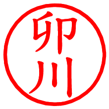 [朱肉の色]を選び、入力窓に“卯川”と入力して[生成]ボタンを押すと、印影が更新され、リンクから電子印鑑(デジタル印影)がダウンロードできます。 電子印鑑「卯川」の作り方文字表示が変なときや、文字バランスが悪いときは[字形切替]のチェックボックスでON/OFFを切り替え[生成]しなおしてください。 生成される画像は通常の印影「卯川.png」と、にじみを表現した少し太めの印影「卯川B.png」の背面透過PNG形式2種と、鮮明なPDF形式の印影「卯川.pdf」の計3種類です。 朱肉の微妙な色の違いを7色で表現しました。デフォルト(左端)は、JISが定めた朱肉の色のマンセル値(7.5R 5/14)をRGB値(217,66,54)に変換したものになっています。 「電子透かし」にチェックを入れて[生成]ボタンを押すと、タイムスタンプを透かしとして埋め込んだセキュアな電子印鑑が作れます。詳細は別ページの「電子透かしとタイムスタンプ」でご覧ください。  卯川さんの日付印が作れます。「日付スタンプメーカー」は、社内向けの書類に利用されることの多い日付印(データ印)が無料で作れるWebアプリケーションです。 中段に日付が入り、上段と下段は、ともに8文字まで文字が入ります。   古代文字で落款印が作れます。「落款スタンプメーカー」で作品を引き立たせる落款印が作れます。  なりきり書道 「落款スタンプメーカー」で作成した落款印の全体的な配置バランスの確認にご利用いただけます。デザインのワンポイントやラインスタンプ等にもお使いください。  遊び心ある卯川さんの角印はいかが? 絵文字が使えてLINEスタンプや年賀状にも使える消しゴムはんこ風の電子印鑑が作れます。  画像スタンプメーカーは、猫派の方はもちろん。犬派の方にもおすすめしたいペットなどのお気に入りの画像とかわいいタッチの文字が入るほっこりしたスタンプです。 マイスタンプメーカーとは法的な電子印鑑にはあたりませんので三文判的な位置付けでご利用ください。 | ||