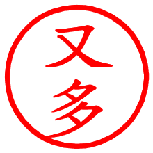 [朱肉の色]を選び、入力窓に“又多”と入力して[生成]ボタンを押すと、印影が更新され、リンクから電子印鑑(デジタル印影)がダウンロードできます。 電子印鑑「又多」の作り方文字表示が変なときや、文字バランスが悪いときは[字形切替]のチェックボックスでON/OFFを切り替え[生成]しなおしてください。 生成される画像は通常の印影「又多.png」と、にじみを表現した少し太めの印影「又多B.png」の背面透過PNG形式2種と、鮮明なPDF形式の印影「又多.pdf」の計3種類です。 朱肉の微妙な色の違いを7色で表現しました。デフォルト(左端)は、JISが定めた朱肉の色のマンセル値(7.5R 5/14)をRGB値(217,66,54)に変換したものになっています。 「電子透かし」にチェックを入れて[生成]ボタンを押すと、タイムスタンプを電子透かしとして埋め込んだセキュアな電子印鑑が作れます。詳細は別ページの「タイムスタンプと電子透かし」でご覧ください。 又多さんの日付印が作れます。「日付スタンプメーカー」は、社内向けの書類に利用されることの多い日付印(データ印)が無料で作れるWebアプリケーションです。中段に日付が入り、上段と下段は、ともに8文字まで文字が入ります。 ![]() 古代文字で落款印が作れます。「落款スタンプメーカー」で作品を引き立たせる落款印が作れます。