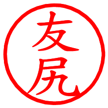 [朱肉の色]を選び、入力窓に“友尻”と入力して[生成]ボタンを押すと、印影が更新され、リンクから電子印鑑(デジタル印影)がダウンロードできます。 電子印鑑「友尻」の作り方文字表示が変なときや、文字バランスが悪いときは[字形切替]のチェックボックスでON/OFFを切り替え[生成]しなおしてください。 生成される画像は通常の印影「友尻.png」と、にじみを表現した少し太めの印影「友尻B.png」の背面透過PNG形式2種と、鮮明なPDF形式の印影「友尻.pdf」の計3種類です。 朱肉の微妙な色の違いを7色で表現しました。デフォルト(左端)は、JISが定めた朱肉の色のマンセル値(7.5R 5/14)をRGB値(217,66,54)に変換したものになっています。 「電子透かし」にチェックを入れて[生成]ボタンを押すと、タイムスタンプを透かしとして埋め込んだセキュアな電子印鑑が作れます。詳細は別ページの「電子透かしとタイムスタンプ」でご覧ください。  友尻さんの日付印が作れます。「日付スタンプメーカー」は、社内向けの書類に利用されることの多い日付印(データ印)が無料で作れるWebアプリケーションです。中段に日付が入り、上段と下段は、ともに8文字まで文字が入ります。 ![]()  古代文字で落款印が作れます。「落款スタンプメーカー」で作品を引き立たせる落款印が作れます。