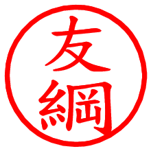 [朱肉の色]を選び、入力窓に“友綱”と入力して[生成]ボタンを押すと、印影が更新され、リンクから電子印鑑(デジタル印影)がダウンロードできます。 電子印鑑「友綱」の作り方文字表示が変なときや、文字バランスが悪いときは[字形切替]のチェックボックスでON/OFFを切り替え[生成]しなおしてください。 生成される画像は通常の印影「友綱.png」と、にじみを表現した少し太めの印影「友綱B.png」の背面透過PNG形式2種と、鮮明なPDF形式の印影「友綱.pdf」の計3種類です。 朱肉の微妙な色の違いを7色で表現しました。デフォルト(左端)は、JISが定めた朱肉の色のマンセル値(7.5R 5/14)をRGB値(217,66,54)に変換したものになっています。 「電子透かし」にチェックを入れて[生成]ボタンを押すと、タイムスタンプを電子透かしとして埋め込んだセキュアな電子印鑑が作れます。詳細は別ページの「タイムスタンプと電子透かし」でご覧ください。 友綱さんの日付印が作れます。「日付スタンプメーカー」は、社内向けの書類に利用されることの多い日付印(データ印)が無料で作れるWebアプリケーションです。中段に日付が入り、上段と下段は、ともに8文字まで文字が入ります。 ![]() 古代文字で落款印が作れます。「落款スタンプメーカー」で作品を引き立たせる落款印が作れます。
