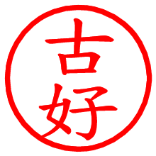 [朱肉の色]を選び、入力窓に“古好”と入力して[生成]ボタンを押すと、印影が更新され、リンクから電子印鑑(デジタル印影)がダウンロードできます。 電子印鑑「古好」の作り方文字表示が変なときや、文字バランスが悪いときは[字形切替]のチェックボックスでON/OFFを切り替え[生成]しなおしてください。 生成される画像は通常の印影「古好.png」と、にじみを表現した少し太めの印影「古好B.png」の背面透過PNG形式2種と、鮮明なPDF形式の印影「古好.pdf」の計3種類です。 朱肉の微妙な色の違いを7色で表現しました。デフォルト(左端)は、JISが定めた朱肉の色のマンセル値(7.5R 5/14)をRGB値(217,66,54)に変換したものになっています。 「電子透かし」にチェックを入れて[生成]ボタンを押すと、タイムスタンプを電子透かしとして埋め込んだセキュアな電子印鑑が作れます。詳細は別ページの「タイムスタンプと電子透かし」でご覧ください。 古好さんの日付印が作れます。「日付スタンプメーカー」は、社内向けの書類に利用されることの多い日付印(データ印)が無料で作れるWebアプリケーションです。中段に日付が入り、上段と下段は、ともに8文字まで文字が入ります。 ![]() 古代文字で落款印が作れます。「落款スタンプメーカー」で作品を引き立たせる落款印が作れます。