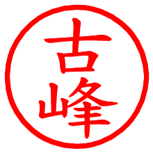 [朱肉の色]を選び、入力窓に“古峰”と入力して[生成]ボタンを押すと、印影が更新され、リンクから電子印鑑(デジタル印影)がダウンロードできます。 電子印鑑「古峰」の作り方文字表示が変なときや、文字バランスが悪いときは[字形切替]のチェックボックスでON/OFFを切り替え[生成]しなおしてください。 生成される画像は通常の印影「古峰.png」と、にじみを表現した少し太めの印影「古峰B.png」の背面透過PNG形式2種と、鮮明なPDF形式の印影「古峰.pdf」の計3種類です。 朱肉の微妙な色の違いを7色で表現しました。デフォルト(左端)は、JISが定めた朱肉の色のマンセル値(7.5R 5/14)をRGB値(217,66,54)に変換したものになっています。 「電子透かし」にチェックを入れて[生成]ボタンを押すと、タイムスタンプを電子透かしとして埋め込んだセキュアな電子印鑑が作れます。詳細は別ページの「タイムスタンプと電子透かし」でご覧ください。 古峰さんの日付印が作れます。「日付スタンプメーカー」は、社内向けの書類に利用されることの多い日付印(データ印)が無料で作れるWebアプリケーションです。中段に日付が入り、上段と下段は、ともに8文字まで文字が入ります。 ![]() 古代文字で落款印が作れます。「落款スタンプメーカー」で作品を引き立たせる落款印が作れます。