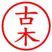 [朱肉の色]を選び、入力窓に“古木”と入力して[生成]ボタンを押すと、印影が更新され、リンクから電子印鑑(デジタル印影)がダウンロードできます。 電子印鑑「古木」の作り方文字表示が変なときや、文字バランスが悪いときは[字形切替]のチェックボックスでON/OFFを切り替え[生成]しなおしてください。 生成される画像は通常の印影「古木.png」と、にじみを表現した少し太めの印影「古木B.png」の背面透過PNG形式2種と、鮮明なPDF形式の印影「古木.pdf」の計3種類です。 朱肉の微妙な色の違いを7色で表現しました。デフォルト(左端)は、JISが定めた朱肉の色のマンセル値(7.5R 5/14)をRGB値(217,66,54)に変換したものになっています。 「電子透かし」にチェックを入れて[生成]ボタンを押すと、タイムスタンプを透かしとして埋め込んだセキュアな電子印鑑が作れます。詳細は別ページの「電子透かしとタイムスタンプ」でご覧ください。  古木さんの日付印が作れます。「日付スタンプメーカー」は、社内向けの書類に利用されることの多い日付印(データ印)が無料で作れるWebアプリケーションです。 中段に日付が入り、上段と下段は、ともに8文字まで文字が入ります。   古代文字で落款印が作れます。「落款スタンプメーカー」で作品を引き立たせる落款印が作れます。  なりきり書道 「落款スタンプメーカー」で作成した落款印の全体的な配置バランスの確認にご利用いただけます。デザインのワンポイントやラインスタンプ等にもお使いください。  遊び心ある古木さんの角印はいかが? 絵文字が使えてLINEスタンプや年賀状にも使える消しゴムはんこ風の電子印鑑が作れます。  画像スタンプメーカーは、猫派の方はもちろん。犬派の方にもおすすめしたいペットなどのお気に入りの画像とかわいいタッチの文字が入るほっこりしたスタンプです。 マイスタンプメーカーとは法的な電子印鑑にはあたりませんので三文判的な位置付けでご利用ください。 | ||