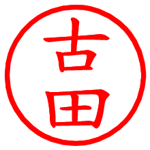[朱肉の色]を選び、入力窓に“古田”と入力して[生成]ボタンを押すと、印影が更新され、リンクから電子印鑑(デジタル印影)がダウンロードできます。 電子印鑑「古田」の作り方文字表示が変なときや、文字バランスが悪いときは[字形切替]のチェックボックスでON/OFFを切り替え[生成]しなおしてください。 生成される画像は通常の印影「古田.png」と、にじみを表現した少し太めの印影「古田B.png」の背面透過PNG形式2種と、鮮明なPDF形式の印影「古田.pdf」の計3種類です。 朱肉の微妙な色の違いを7色で表現しました。デフォルト(左端)は、JISが定めた朱肉の色のマンセル値(7.5R 5/14)をRGB値(217,66,54)に変換したものになっています。 「電子透かし」にチェックを入れて[生成]ボタンを押すと、タイムスタンプを透かしとして埋め込んだセキュアな電子印鑑が作れます。詳細は別ページの「電子透かしとタイムスタンプ」でご覧ください。 古田さんの日付印が作れます。「日付スタンプメーカー」は、社内向けの書類に利用されることの多い日付印(データ印)が無料で作れるWebアプリケーションです。中段に日付が入り、上段と下段は、ともに8文字まで文字が入ります。 ![]() 古代文字で落款印が作れます。「落款スタンプメーカー」で作品を引き立たせる落款印が作れます。