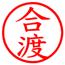 [朱肉の色]を選び、入力窓に“合渡”と入力して[生成]ボタンを押すと、印影が更新され、リンクから電子印鑑(デジタル印影)がダウンロードできます。 電子印鑑「合渡」の作り方文字表示が変なときや、文字バランスが悪いときは[字形切替]のチェックボックスでON/OFFを切り替え[生成]しなおしてください。 生成される画像は通常の印影「合渡.png」と、にじみを表現した少し太めの印影「合渡B.png」の背面透過PNG形式2種と、鮮明なPDF形式の印影「合渡.pdf」の計3種類です。 朱肉の微妙な色の違いを7色で表現しました。デフォルト(左端)は、JISが定めた朱肉の色のマンセル値(7.5R 5/14)をRGB値(217,66,54)に変換したものになっています。 「電子透かし」にチェックを入れて[生成]ボタンを押すと、タイムスタンプを電子透かしとして埋め込んだセキュアな電子印鑑が作れます。詳細は別ページの「タイムスタンプと電子透かし」でご覧ください。 合渡さんの日付印が作れます。「日付スタンプメーカー」は、社内向けの書類に利用されることの多い日付印(データ印)が無料で作れるWebアプリケーションです。中段に日付が入り、上段と下段は、ともに8文字まで文字が入ります。 ![]() 古代文字で落款印が作れます。「落款スタンプメーカー」で作品を引き立たせる落款印が作れます。