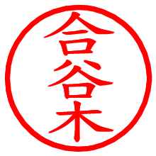 [朱肉の色]を選び、入力窓に“合谷木”と入力して[生成]ボタンを押すと、印影が更新され、リンクから電子印鑑(デジタル印影)がダウンロードできます。 電子印鑑「合谷木」の作り方文字表示が変なときや、文字バランスが悪いときは[字形切替]のチェックボックスでON/OFFを切り替え[生成]しなおしてください。 生成される画像は通常の印影「合谷木.png」と、にじみを表現した少し太めの印影「合谷木B.png」の背面透過PNG形式2種と、鮮明なPDF形式の印影「合谷木.pdf」の計3種類です。 朱肉の微妙な色の違いを7色で表現しました。デフォルト(左端)は、JISが定めた朱肉の色のマンセル値(7.5R 5/14)をRGB値(217,66,54)に変換したものになっています。 「電子透かし」にチェックを入れて[生成]ボタンを押すと、タイムスタンプを電子透かしとして埋め込んだセキュアな電子印鑑が作れます。詳細は別ページの「タイムスタンプと電子透かし」でご覧ください。 合谷木さんの日付印が作れます。「日付スタンプメーカー」は、社内向けの書類に利用されることの多い日付印(データ印)が無料で作れるWebアプリケーションです。中段に日付が入り、上段と下段は、ともに8文字まで文字が入ります。 ![]() 古代文字で落款印が作れます。「落款スタンプメーカー」で作品を引き立たせる落款印が作れます。