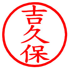 [朱肉の色]を選び、入力窓に“吉久保”と入力して[生成]ボタンを押すと、印影が更新され、リンクから電子印鑑(デジタル印影)がダウンロードできます。 電子印鑑「吉久保」の作り方文字表示が変なときや、文字バランスが悪いときは[字形切替]のチェックボックスでON/OFFを切り替え[生成]しなおしてください。 生成される画像は通常の印影「吉久保.png」と、にじみを表現した少し太めの印影「吉久保B.png」の背面透過PNG形式2種と、鮮明なPDF形式の印影「吉久保.pdf」の計3種類です。 朱肉の微妙な色の違いを7色で表現しました。デフォルト(左端)は、JISが定めた朱肉の色のマンセル値(7.5R 5/14)をRGB値(217,66,54)に変換したものになっています。 「電子透かし」にチェックを入れて[生成]ボタンを押すと、タイムスタンプを電子透かしとして埋め込んだセキュアな電子印鑑が作れます。詳細は別ページの「タイムスタンプと電子透かし」でご覧ください。 吉久保さんの日付印が作れます。「日付スタンプメーカー」は、社内向けの書類に利用されることの多い日付印(データ印)が無料で作れるWebアプリケーションです。中段に日付が入り、上段と下段は、ともに8文字まで文字が入ります。 ![]() 古代文字で落款印が作れます。「落款スタンプメーカー」で作品を引き立たせる落款印が作れます。