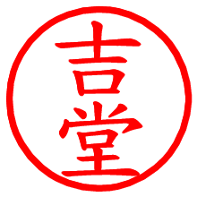 [朱肉の色]を選び、入力窓に“吉堂”と入力して[生成]ボタンを押すと、印影が更新され、リンクから電子印鑑(デジタル印影)がダウンロードできます。 電子印鑑「吉堂」の作り方文字表示が変なときや、文字バランスが悪いときは[字形切替]のチェックボックスでON/OFFを切り替え[生成]しなおしてください。 生成される画像は通常の印影「吉堂.png」と、にじみを表現した少し太めの印影「吉堂B.png」の背面透過PNG形式2種と、鮮明なPDF形式の印影「吉堂.pdf」の計3種類です。 朱肉の微妙な色の違いを7色で表現しました。デフォルト(左端)は、JISが定めた朱肉の色のマンセル値(7.5R 5/14)をRGB値(217,66,54)に変換したものになっています。 「電子透かし」にチェックを入れて[生成]ボタンを押すと、タイムスタンプを電子透かしとして埋め込んだセキュアな電子印鑑が作れます。詳細は別ページの「タイムスタンプと電子透かし」でご覧ください。 吉堂さんの日付印が作れます。「日付スタンプメーカー」は、社内向けの書類に利用されることの多い日付印(データ印)が無料で作れるWebアプリケーションです。中段に日付が入り、上段と下段は、ともに8文字まで文字が入ります。 ![]() 古代文字で落款印が作れます。「落款スタンプメーカー」で作品を引き立たせる落款印が作れます。