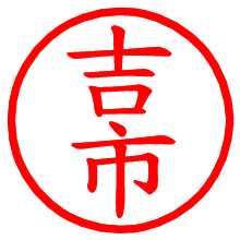 [朱肉の色]を選び、入力窓に“吉市”と入力して[生成]ボタンを押すと、印影が更新され、リンクから電子印鑑(デジタル印影)がダウンロードできます。 電子印鑑「吉市」の作り方文字表示が変なときや、文字バランスが悪いときは[字形切替]のチェックボックスでON/OFFを切り替え[生成]しなおしてください。 生成される画像は通常の印影「吉市.png」と、にじみを表現した少し太めの印影「吉市B.png」の背面透過PNG形式2種と、鮮明なPDF形式の印影「吉市.pdf」の計3種類です。 朱肉の微妙な色の違いを7色で表現しました。デフォルト(左端)は、JISが定めた朱肉の色のマンセル値(7.5R 5/14)をRGB値(217,66,54)に変換したものになっています。 「電子透かし」にチェックを入れて[生成]ボタンを押すと、タイムスタンプを電子透かしとして埋め込んだセキュアな電子印鑑が作れます。詳細は別ページの「タイムスタンプと電子透かし」でご覧ください。 吉市さんの日付印が作れます。「日付スタンプメーカー」は、社内向けの書類に利用されることの多い日付印(データ印)が無料で作れるWebアプリケーションです。中段に日付が入り、上段と下段は、ともに8文字まで文字が入ります。 ![]() 古代文字で落款印が作れます。「落款スタンプメーカー」で作品を引き立たせる落款印が作れます。