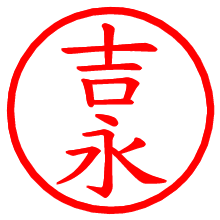 [朱肉の色]を選び、入力窓に“吉永”と入力して[生成]ボタンを押すと、印影が更新され、リンクから電子印鑑(デジタル印影)がダウンロードできます。 電子印鑑「吉永」の作り方文字表示が変なときや、文字バランスが悪いときは[字形切替]のチェックボックスでON/OFFを切り替え[生成]しなおしてください。 生成される画像は通常の印影「吉永.png」と、にじみを表現した少し太めの印影「吉永B.png」の背面透過PNG形式2種と、鮮明なPDF形式の印影「吉永.pdf」の計3種類です。 朱肉の微妙な色の違いを7色で表現しました。デフォルト(左端)は、JISが定めた朱肉の色のマンセル値(7.5R 5/14)をRGB値(217,66,54)に変換したものになっています。 「電子透かし」にチェックを入れて[生成]ボタンを押すと、タイムスタンプを透かしとして埋め込んだセキュアな電子印鑑が作れます。詳細は別ページの「電子透かしとタイムスタンプ」でご覧ください。 吉永さんの日付印が作れます。「日付スタンプメーカー」は、社内向けの書類に利用されることの多い日付印(データ印)が無料で作れるWebアプリケーションです。中段に日付が入り、上段と下段は、ともに8文字まで文字が入ります。 ![]() 古代文字で落款印が作れます。「落款スタンプメーカー」で作品を引き立たせる落款印が作れます。