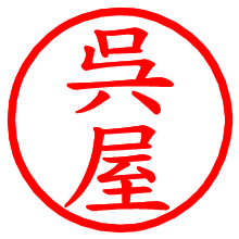 [朱肉の色]を選び、入力窓に“呉屋”と入力して[生成]ボタンを押すと、印影が更新され、リンクから電子印鑑(デジタル印影)がダウンロードできます。 電子印鑑「呉屋」の作り方文字表示が変なときや、文字バランスが悪いときは[字形切替]のチェックボックスでON/OFFを切り替え[生成]しなおしてください。 生成される画像は通常の印影「呉屋.png」と、にじみを表現した少し太めの印影「呉屋B.png」の背面透過PNG形式2種と、鮮明なPDF形式の印影「呉屋.pdf」の計3種類です。 朱肉の微妙な色の違いを7色で表現しました。デフォルト(左端)は、JISが定めた朱肉の色のマンセル値(7.5R 5/14)をRGB値(217,66,54)に変換したものになっています。 「電子透かし」にチェックを入れて[生成]ボタンを押すと、タイムスタンプを透かしとして埋め込んだセキュアな電子印鑑が作れます。詳細は別ページの「電子透かしとタイムスタンプ」でご覧ください。 呉屋さんの日付印が作れます。「日付スタンプメーカー」は、社内向けの書類に利用されることの多い日付印(データ印)が無料で作れるWebアプリケーションです。中段に日付が入り、上段と下段は、ともに8文字まで文字が入ります。 ![]() 古代文字で落款印が作れます。「落款スタンプメーカー」で作品を引き立たせる落款印が作れます。