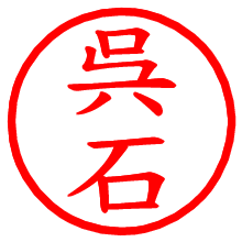 [朱肉の色]を選び、入力窓に“呉石”と入力して[生成]ボタンを押すと、印影が更新され、リンクから電子印鑑(デジタル印影)がダウンロードできます。 電子印鑑「呉石」の作り方文字表示が変なときや、文字バランスが悪いときは[字形切替]のチェックボックスでON/OFFを切り替え[生成]しなおしてください。 生成される画像は通常の印影「呉石.png」と、にじみを表現した少し太めの印影「呉石B.png」の背面透過PNG形式2種と、鮮明なPDF形式の印影「呉石.pdf」の計3種類です。 朱肉の微妙な色の違いを7色で表現しました。デフォルト(左端)は、JISが定めた朱肉の色のマンセル値(7.5R 5/14)をRGB値(217,66,54)に変換したものになっています。 「電子透かし」にチェックを入れて[生成]ボタンを押すと、タイムスタンプを電子透かしとして埋め込んだセキュアな電子印鑑が作れます。詳細は別ページの「タイムスタンプと電子透かし」でご覧ください。 呉石さんの日付印が作れます。「日付スタンプメーカー」は、社内向けの書類に利用されることの多い日付印(データ印)が無料で作れるWebアプリケーションです。中段に日付が入り、上段と下段は、ともに8文字まで文字が入ります。 ![]() 古代文字で落款印が作れます。「落款スタンプメーカー」で作品を引き立たせる落款印が作れます。