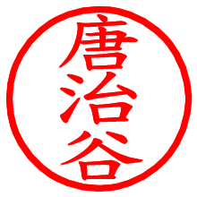 [朱肉の色]を選び、入力窓に“唐治谷”と入力して[生成]ボタンを押すと、印影が更新され、リンクから電子印鑑(デジタル印影)がダウンロードできます。 電子印鑑「唐治谷」の作り方文字表示が変なときや、文字バランスが悪いときは[字形切替]のチェックボックスでON/OFFを切り替え[生成]しなおしてください。 生成される画像は通常の印影「唐治谷.png」と、にじみを表現した少し太めの印影「唐治谷B.png」の背面透過PNG形式2種と、鮮明なPDF形式の印影「唐治谷.pdf」の計3種類です。 朱肉の微妙な色の違いを7色で表現しました。デフォルト(左端)は、JISが定めた朱肉の色のマンセル値(7.5R 5/14)をRGB値(217,66,54)に変換したものになっています。 「電子透かし」にチェックを入れて[生成]ボタンを押すと、タイムスタンプを電子透かしとして埋め込んだセキュアな電子印鑑が作れます。詳細は別ページの「タイムスタンプと電子透かし」でご覧ください。 唐治谷さんの日付印が作れます。「日付スタンプメーカー」は、社内向けの書類に利用されることの多い日付印(データ印)が無料で作れるWebアプリケーションです。中段に日付が入り、上段と下段は、ともに8文字まで文字が入ります。 ![]() 古代文字で落款印が作れます。「落款スタンプメーカー」で作品を引き立たせる落款印が作れます。