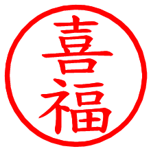 [朱肉の色]を選び、入力窓に“喜福”と入力して[生成]ボタンを押すと、印影が更新され、リンクから電子印鑑(デジタル印影)がダウンロードできます。 電子印鑑「喜福」の作り方文字表示が変なときや、文字バランスが悪いときは[字形切替]のチェックボックスでON/OFFを切り替え[生成]しなおしてください。 生成される画像は通常の印影「喜福.png」と、にじみを表現した少し太めの印影「喜福B.png」の背面透過PNG形式2種と、鮮明なPDF形式の印影「喜福.pdf」の計3種類です。 朱肉の微妙な色の違いを7色で表現しました。デフォルト(左端)は、JISが定めた朱肉の色のマンセル値(7.5R 5/14)をRGB値(217,66,54)に変換したものになっています。 「電子透かし」にチェックを入れて[生成]ボタンを押すと、タイムスタンプを透かしとして埋め込んだセキュアな電子印鑑が作れます。詳細は別ページの「電子透かしとタイムスタンプ」でご覧ください。 喜福さんの日付印が作れます。「日付スタンプメーカー」は、社内向けの書類に利用されることの多い日付印(データ印)が無料で作れるWebアプリケーションです。中段に日付が入り、上段と下段は、ともに8文字まで文字が入ります。 ![]() 古代文字で落款印が作れます。「落款スタンプメーカー」で作品を引き立たせる落款印が作れます。