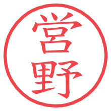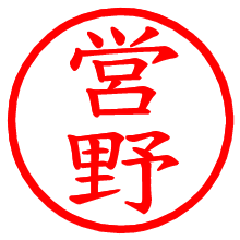 [朱肉の色]を選び、入力窓に“営野”と入力して[生成]ボタンを押すと、印影が更新され、リンクから電子印鑑(デジタル印影)がダウンロードできます。 電子印鑑「営野」の作り方文字表示が変なときや、文字バランスが悪いときは[字形切替]のチェックボックスでON/OFFを切り替え[生成]しなおしてください。 生成される画像は通常の印影「営野.png」と、にじみを表現した少し太めの印影「営野B.png」の背面透過PNG形式2種と、鮮明なPDF形式の印影「営野.pdf」の計3種類です。 朱肉の微妙な色の違いを7色で表現しました。デフォルト(左端)は、JISが定めた朱肉の色のマンセル値(7.5R 5/14)をRGB値(217,66,54)に変換したものになっています。 「電子透かし」にチェックを入れて[生成]ボタンを押すと、タイムスタンプを電子透かしとして埋め込んだセキュアな電子印鑑が作れます。詳細は別ページの「タイムスタンプと電子透かし」でご覧ください。 営野さんの日付印が作れます。「日付スタンプメーカー」は、社内向けの書類に利用されることの多い日付印(データ印)が無料で作れるWebアプリケーションです。中段に日付が入り、上段と下段は、ともに8文字まで文字が入ります。 ![]() 古代文字で落款印が作れます。「落款スタンプメーカー」で作品を引き立たせる落款印が作れます。