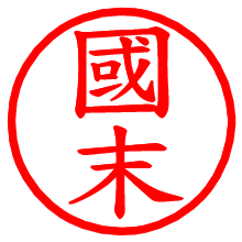 [朱肉の色]を選び、入力窓に“國末”と入力して[生成]ボタンを押すと、印影が更新され、リンクから電子印鑑(デジタル印影)がダウンロードできます。 電子印鑑「國末」の作り方文字表示が変なときや、文字バランスが悪いときは[字形切替]のチェックボックスでON/OFFを切り替え[生成]しなおしてください。 生成される画像は通常の印影「國末.png」と、にじみを表現した少し太めの印影「國末B.png」の背面透過PNG形式2種と、鮮明なPDF形式の印影「國末.pdf」の計3種類です。 朱肉の微妙な色の違いを7色で表現しました。デフォルト(左端)は、JISが定めた朱肉の色のマンセル値(7.5R 5/14)をRGB値(217,66,54)に変換したものになっています。 「電子透かし」にチェックを入れて[生成]ボタンを押すと、タイムスタンプを電子透かしとして埋め込んだセキュアな電子印鑑が作れます。詳細は別ページの「タイムスタンプと電子透かし」でご覧ください。 國末さんの日付印が作れます。「日付スタンプメーカー」は、社内向けの書類に利用されることの多い日付印(データ印)が無料で作れるWebアプリケーションです。中段に日付が入り、上段と下段は、ともに8文字まで文字が入ります。 ![]() 古代文字で落款印が作れます。「落款スタンプメーカー」で作品を引き立たせる落款印が作れます。
