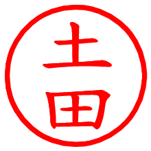 [朱肉の色]を選び、入力窓に“土田”と入力して[生成]ボタンを押すと、印影が更新され、リンクから電子印鑑(デジタル印影)がダウンロードできます。 電子印鑑「土田」の作り方文字表示が変なときや、文字バランスが悪いときは[字形切替]のチェックボックスでON/OFFを切り替え[生成]しなおしてください。 生成される画像は通常の印影「土田.png」と、にじみを表現した少し太めの印影「土田B.png」の背面透過PNG形式2種と、鮮明なPDF形式の印影「土田.pdf」の計3種類です。 朱肉の微妙な色の違いを7色で表現しました。デフォルト(左端)は、JISが定めた朱肉の色のマンセル値(7.5R 5/14)をRGB値(217,66,54)に変換したものになっています。 「電子透かし」にチェックを入れて[生成]ボタンを押すと、タイムスタンプを透かしとして埋め込んだセキュアな電子印鑑が作れます。詳細は別ページの「電子透かしとタイムスタンプ」でご覧ください。  土田さんの日付印が作れます。「日付スタンプメーカー」は、社内向けの書類に利用されることの多い日付印(データ印)が無料で作れるWebアプリケーションです。 中段に日付が入り、上段と下段は、ともに8文字まで文字が入ります。   古代文字で落款印が作れます。「落款スタンプメーカー」で作品を引き立たせる落款印が作れます。  なりきり書道 「落款スタンプメーカー」で作成した落款印の全体的な配置バランスの確認にご利用いただけます。デザインのワンポイントやラインスタンプ等にもお使いください。  遊び心ある土田さんの角印はいかが? 絵文字が使えてLINEスタンプや年賀状にも使える消しゴムはんこ風の電子印鑑が作れます。  画像スタンプメーカーは、猫派の方はもちろん。犬派の方にもおすすめしたいペットなどのお気に入りの画像とかわいいタッチの文字が入るほっこりしたスタンプです。 マイスタンプメーカーとは法的な電子印鑑にはあたりませんので三文判的な位置付けでご利用ください。 | ||