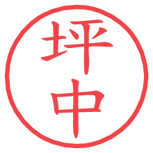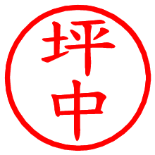 [朱肉の色]を選び、入力窓に“坪中”と入力して[生成]ボタンを押すと、印影が更新され、リンクから電子印鑑(デジタル印影)がダウンロードできます。 電子印鑑「坪中」の作り方文字表示が変なときや、文字バランスが悪いときは[字形切替]のチェックボックスでON/OFFを切り替え[生成]しなおしてください。 生成される画像は通常の印影「坪中.png」と、にじみを表現した少し太めの印影「坪中B.png」の背面透過PNG形式2種と、鮮明なPDF形式の印影「坪中.pdf」の計3種類です。 朱肉の微妙な色の違いを7色で表現しました。デフォルト(左端)は、JISが定めた朱肉の色のマンセル値(7.5R 5/14)をRGB値(217,66,54)に変換したものになっています。 「電子透かし」にチェックを入れて[生成]ボタンを押すと、タイムスタンプを電子透かしとして埋め込んだセキュアな電子印鑑が作れます。詳細は別ページの「タイムスタンプと電子透かし」でご覧ください。 坪中さんの日付印が作れます。「日付スタンプメーカー」は、社内向けの書類に利用されることの多い日付印(データ印)が無料で作れるWebアプリケーションです。中段に日付が入り、上段と下段は、ともに8文字まで文字が入ります。 ![]() 古代文字で落款印が作れます。「落款スタンプメーカー」で作品を引き立たせる落款印が作れます。
