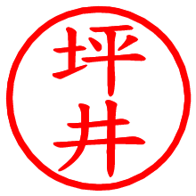 [朱肉の色]を選び、入力窓に“坪井”と入力して[生成]ボタンを押すと、印影が更新され、リンクから電子印鑑(デジタル印影)がダウンロードできます。 電子印鑑「坪井」の作り方文字表示が変なときや、文字バランスが悪いときは[字形切替]のチェックボックスでON/OFFを切り替え[生成]しなおしてください。 生成される画像は通常の印影「坪井.png」と、にじみを表現した少し太めの印影「坪井B.png」の背面透過PNG形式2種と、鮮明なPDF形式の印影「坪井.pdf」の計3種類です。 朱肉の微妙な色の違いを7色で表現しました。デフォルト(左端)は、JISが定めた朱肉の色のマンセル値(7.5R 5/14)をRGB値(217,66,54)に変換したものになっています。 「電子透かし」にチェックを入れて[生成]ボタンを押すと、タイムスタンプを透かしとして埋め込んだセキュアな電子印鑑が作れます。詳細は別ページの「電子透かしとタイムスタンプ」でご覧ください。 坪井さんの日付印が作れます。「日付スタンプメーカー」は、社内向けの書類に利用されることの多い日付印(データ印)が無料で作れるWebアプリケーションです。中段に日付が入り、上段と下段は、ともに8文字まで文字が入ります。 ![]() 古代文字で落款印が作れます。「落款スタンプメーカー」で作品を引き立たせる落款印が作れます。