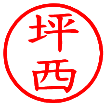 [朱肉の色]を選び、入力窓に“坪西”と入力して[生成]ボタンを押すと、印影が更新され、リンクから電子印鑑(デジタル印影)がダウンロードできます。 電子印鑑「坪西」の作り方文字表示が変なときや、文字バランスが悪いときは[字形切替]のチェックボックスでON/OFFを切り替え[生成]しなおしてください。 生成される画像は通常の印影「坪西.png」と、にじみを表現した少し太めの印影「坪西B.png」の背面透過PNG形式2種と、鮮明なPDF形式の印影「坪西.pdf」の計3種類です。 朱肉の微妙な色の違いを7色で表現しました。デフォルト(左端)は、JISが定めた朱肉の色のマンセル値(7.5R 5/14)をRGB値(217,66,54)に変換したものになっています。 「電子透かし」にチェックを入れて[生成]ボタンを押すと、タイムスタンプを電子透かしとして埋め込んだセキュアな電子印鑑が作れます。詳細は別ページの「タイムスタンプと電子透かし」でご覧ください。 坪西さんの日付印が作れます。「日付スタンプメーカー」は、社内向けの書類に利用されることの多い日付印(データ印)が無料で作れるWebアプリケーションです。中段に日付が入り、上段と下段は、ともに8文字まで文字が入ります。 ![]() 古代文字で落款印が作れます。「落款スタンプメーカー」で作品を引き立たせる落款印が作れます。