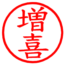 [朱肉の色]を選び、入力窓に“増喜”と入力して[生成]ボタンを押すと、印影が更新され、リンクから電子印鑑(デジタル印影)がダウンロードできます。 電子印鑑「増喜」の作り方文字表示が変なときや、文字バランスが悪いときは[字形切替]のチェックボックスでON/OFFを切り替え[生成]しなおしてください。 生成される画像は通常の印影「増喜.png」と、にじみを表現した少し太めの印影「増喜B.png」の背面透過PNG形式2種と、鮮明なPDF形式の印影「増喜.pdf」の計3種類です。 朱肉の微妙な色の違いを7色で表現しました。デフォルト(左端)は、JISが定めた朱肉の色のマンセル値(7.5R 5/14)をRGB値(217,66,54)に変換したものになっています。 「電子透かし」にチェックを入れて[生成]ボタンを押すと、タイムスタンプを電子透かしとして埋め込んだセキュアな電子印鑑が作れます。詳細は別ページの「タイムスタンプと電子透かし」でご覧ください。 増喜さんの日付印が作れます。「日付スタンプメーカー」は、社内向けの書類に利用されることの多い日付印(データ印)が無料で作れるWebアプリケーションです。中段に日付が入り、上段と下段は、ともに8文字まで文字が入ります。 ![]() 古代文字で落款印が作れます。「落款スタンプメーカー」で作品を引き立たせる落款印が作れます。