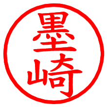[朱肉の色]を選び、入力窓に“墨崎”と入力して[生成]ボタンを押すと、印影が更新され、リンクから電子印鑑(デジタル印影)がダウンロードできます。 電子印鑑「墨崎」の作り方文字表示が変なときや、文字バランスが悪いときは[字形切替]のチェックボックスでON/OFFを切り替え[生成]しなおしてください。 生成される画像は通常の印影「墨崎.png」と、にじみを表現した少し太めの印影「墨崎B.png」の背面透過PNG形式2種と、鮮明なPDF形式の印影「墨崎.pdf」の計3種類です。 朱肉の微妙な色の違いを7色で表現しました。デフォルト(左端)は、JISが定めた朱肉の色のマンセル値(7.5R 5/14)をRGB値(217,66,54)に変換したものになっています。 「電子透かし」にチェックを入れて[生成]ボタンを押すと、タイムスタンプを電子透かしとして埋め込んだセキュアな電子印鑑が作れます。詳細は別ページの「タイムスタンプと電子透かし」でご覧ください。 墨崎さんの日付印が作れます。「日付スタンプメーカー」は、社内向けの書類に利用されることの多い日付印(データ印)が無料で作れるWebアプリケーションです。中段に日付が入り、上段と下段は、ともに8文字まで文字が入ります。 ![]() 古代文字で落款印が作れます。「落款スタンプメーカー」で作品を引き立たせる落款印が作れます。