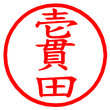 [朱肉の色]を選び、入力窓に“壱貫田”と入力して[生成]ボタンを押すと、印影が更新され、リンクから電子印鑑(デジタル印影)がダウンロードできます。 電子印鑑「壱貫田」の作り方文字表示が変なときや、文字バランスが悪いときは[字形切替]のチェックボックスでON/OFFを切り替え[生成]しなおしてください。 生成される画像は通常の印影「壱貫田.png」と、にじみを表現した少し太めの印影「壱貫田B.png」の背面透過PNG形式2種と、鮮明なPDF形式の印影「壱貫田.pdf」の計3種類です。 朱肉の微妙な色の違いを7色で表現しました。デフォルト(左端)は、JISが定めた朱肉の色のマンセル値(7.5R 5/14)をRGB値(217,66,54)に変換したものになっています。 「電子透かし」にチェックを入れて[生成]ボタンを押すと、タイムスタンプを電子透かしとして埋め込んだセキュアな電子印鑑が作れます。詳細は別ページの「タイムスタンプと電子透かし」でご覧ください。 壱貫田さんの日付印が作れます。「日付スタンプメーカー」は、社内向けの書類に利用されることの多い日付印(データ印)が無料で作れるWebアプリケーションです。中段に日付が入り、上段と下段は、ともに8文字まで文字が入ります。 ![]() 古代文字で落款印が作れます。「落款スタンプメーカー」で作品を引き立たせる落款印が作れます。