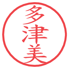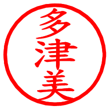 [朱肉の色]を選び、入力窓に“多津美”と入力して[生成]ボタンを押すと、印影が更新され、リンクから電子印鑑(デジタル印影)がダウンロードできます。 電子印鑑「多津美」の作り方文字表示が変なときや、文字バランスが悪いときは[字形切替]のチェックボックスでON/OFFを切り替え[生成]しなおしてください。 生成される画像は通常の印影「多津美.png」と、にじみを表現した少し太めの印影「多津美B.png」の背面透過PNG形式2種と、鮮明なPDF形式の印影「多津美.pdf」の計3種類です。 朱肉の微妙な色の違いを7色で表現しました。デフォルト(左端)は、JISが定めた朱肉の色のマンセル値(7.5R 5/14)をRGB値(217,66,54)に変換したものになっています。 「電子透かし」にチェックを入れて[生成]ボタンを押すと、タイムスタンプを電子透かしとして埋め込んだセキュアな電子印鑑が作れます。詳細は別ページの「タイムスタンプと電子透かし」でご覧ください。 多津美さんの日付印が作れます。「日付スタンプメーカー」は、社内向けの書類に利用されることの多い日付印(データ印)が無料で作れるWebアプリケーションです。中段に日付が入り、上段と下段は、ともに8文字まで文字が入ります。 ![]() 古代文字で落款印が作れます。「落款スタンプメーカー」で作品を引き立たせる落款印が作れます。
